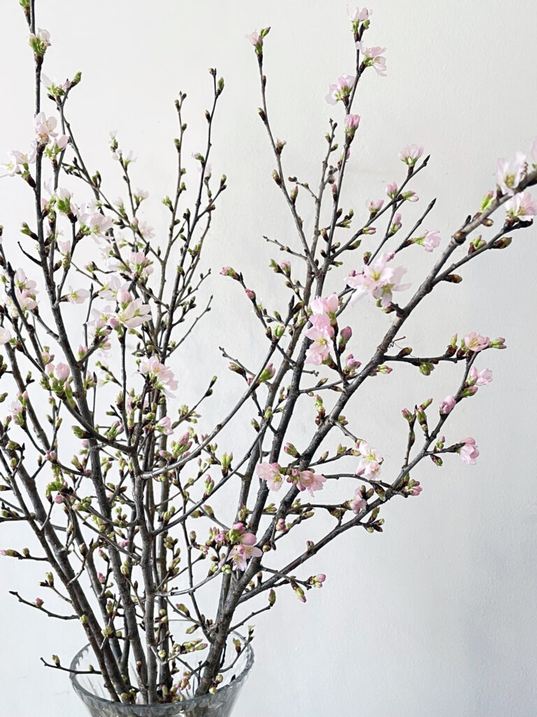 年賀のごあいさつで明治安田様よりいただきました桜の花です。 冬に花を咲かせる桜として注目を集める啓翁桜(けいおうざくら)。山形県知事賞連続受賞の生産者が手掛けた山形の啓翁桜は、花芽やつぼみも多く、可憐な花が咲きます。開花から葉桜まで楽しめる、この季節には珍しい桜が1階玄関ロビーの花瓶に生けられていますので、ぜひご覧ください。 -
