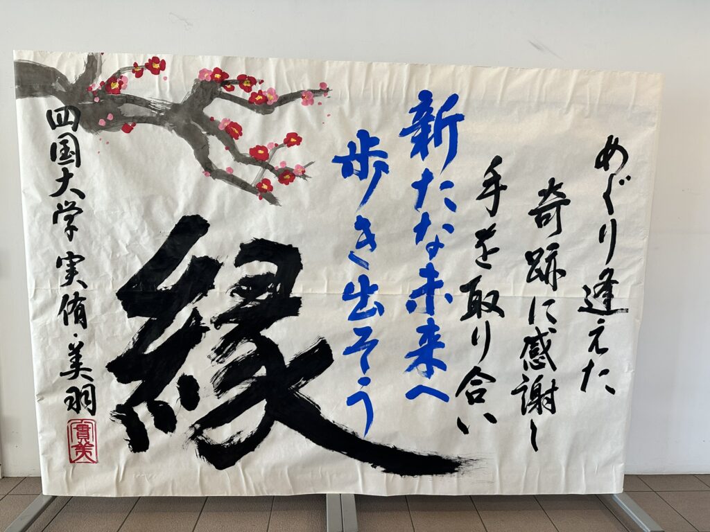 皆様、新年あけましておめでとうございます。本年もどうぞよろしくお願いいたします。 令和8年1月3日(土)に鴨島公民館3階江川わくわくホールにて開催されました「吉野川市二十歳を祝う会」で展示されました記念書道作品を、現在、鴨島公民館1階玄関ロビーにて展示しています。1月中の展示となりますが、お立ち寄りの際には是非ご覧ください。 今年の参加者で四国大学書道文化学科に在籍している石原 実侑さんと林 美羽さんのお二人が心を一つにして書き上げた共同作品です。二十歳を迎えた方々の未来にはば... -