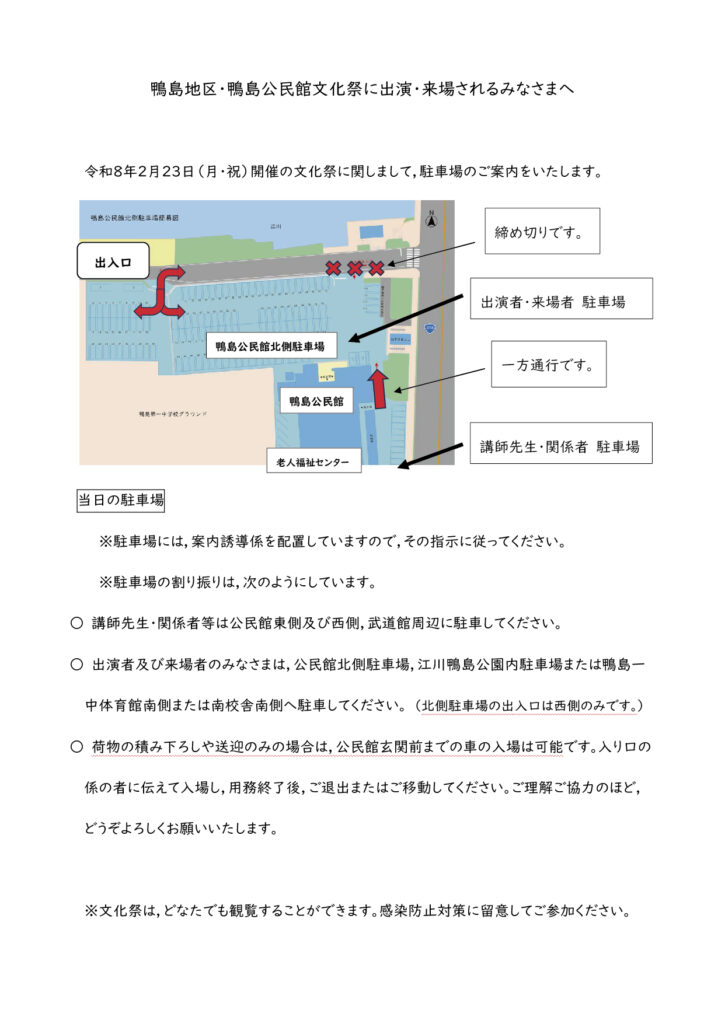 鴨島地区・鴨島公民館文化祭の駐車場について(お知らせ)