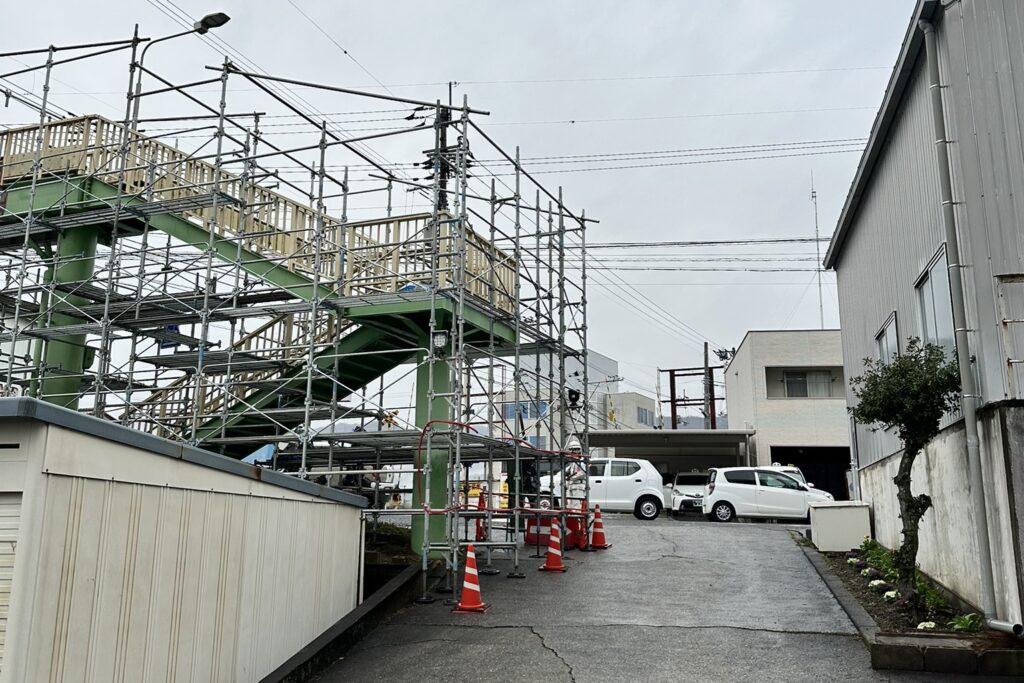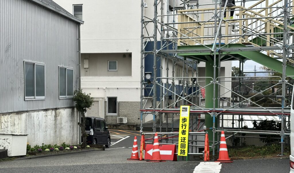 鴨島公民館 南側出入口の安全通行について 2025 12/25 お知らせ 2025年12月25日 鴨島公民館前の国道318号に架かる歩道橋工事の関係で、公民館南側出入口に作業用足場が設置されています。 道幅が狭くなっていますので、利用の際の通行時は安全に十分注意をしてください。 工事は3月下旬まで続く予定です。 北側から 南側から お知らせ お知らせ ピックアップ