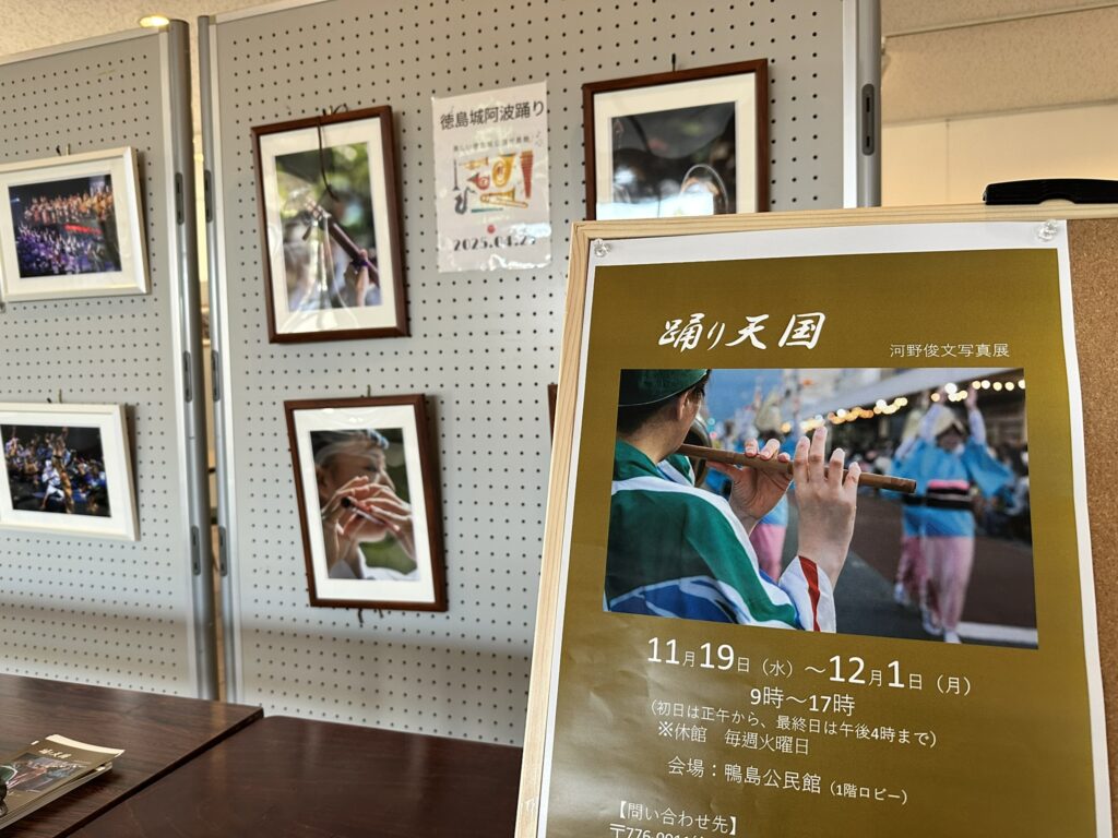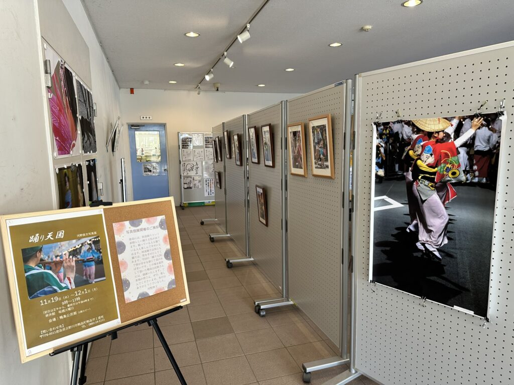 鴨島公民館1階ロビーでは、河野俊文氏による熱気あふれる場面を撮影した写真展を開催しています。